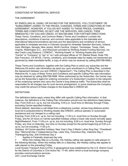 4. Credo Long Distance Customer Service